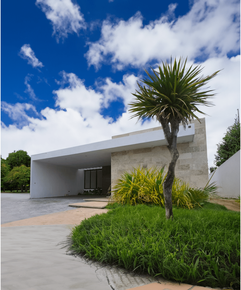 También incluye con un estacionamiento para 1 o 2 vehículos lo cual permite facilidad para estacionarse, una alberca y una terraza, cuarto de servicio con baño propio, cuarto de lavado y family room. Éste modelo se puede adaptar para construir más habitaciones en la segunda planta.